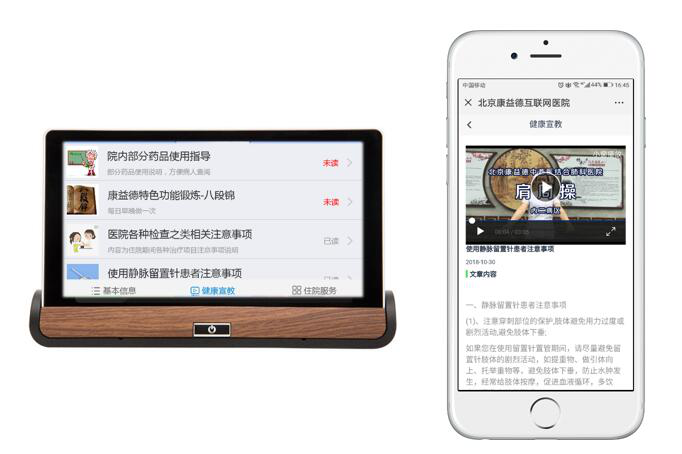 拓展床旁醫(yī)護、營養(yǎng)點餐、患者貼心服務、醫(yī)患交流、住院宣教、健康指導等功能,改善住院服務流程,改善患者就醫(yī)體驗,優(yōu)化醫(yī)患交互,改善醫(yī)療服務模式,提升智慧醫(yī)療的效率和水平。