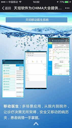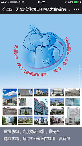 通過這樣一年一度高規(guī)格的國家級盛會,加強(qiáng)了移動醫(yī)療行業(yè)的交流與合作,推動了移動醫(yī)療產(chǎn)業(yè)健康可持續(xù)發(fā)展。同時激勵著天坦軟件要為移動醫(yī)療做出更大的貢獻(xiàn),正如與會專家對天坦軟件的評價(jià)一樣 “渴了就喝天坦特供水,“天然、健康、安全、解渴”的產(chǎn)品,才是好產(chǎn)品”。