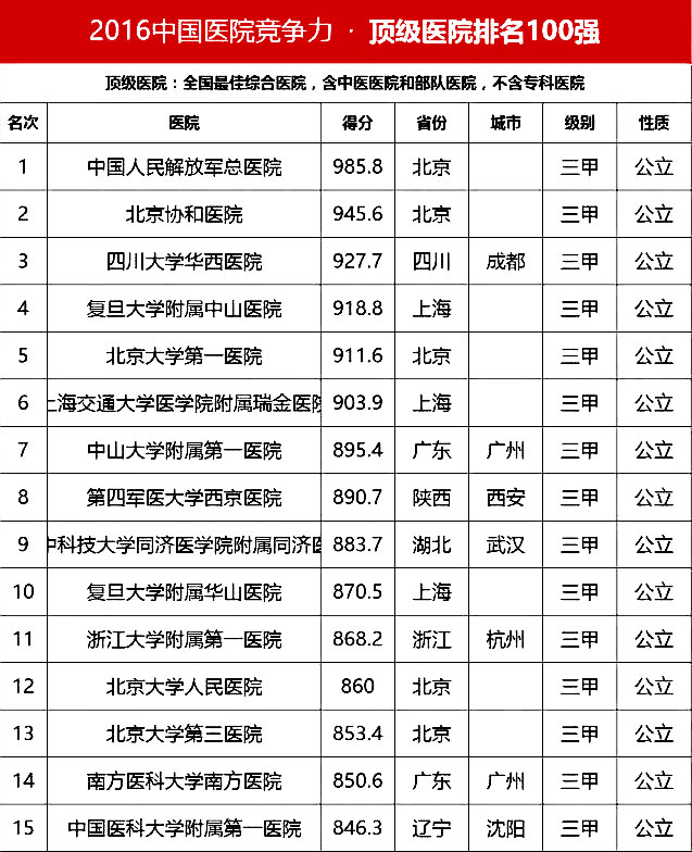 “頂級醫(yī)院100強(qiáng)”采用的排名指標(biāo)體系包括四個方面:醫(yī)院最優(yōu)規(guī)模(實(shí)開床位數(shù)、年門急診量、年出院量、全院人數(shù));醫(yī)療技術(shù)(正高職稱人數(shù)/全院人數(shù)、全院醫(yī)師人數(shù)/實(shí)開床位數(shù)、醫(yī)療設(shè)備資產(chǎn)/總資產(chǎn)、年住院手術(shù)量/年出院量、國家級衛(wèi)紀(jì)委臨床重點(diǎn)???總??茣CU床占比);醫(yī)院運(yùn)行(平均住院天數(shù)、床位使用率、門診均次費(fèi)用/當(dāng)?shù)厝司鵊DP、住院均次費(fèi)用/當(dāng)?shù)厝司鵊DP、外省住院病人占比);學(xué)術(shù)影響力(院士人數(shù)、學(xué)術(shù)領(lǐng)袖占比、教育部重點(diǎn)學(xué)科及重點(diǎn)實(shí)驗(yàn)室/總??茢?shù)、本年度獲國家自然科學(xué)基金項(xiàng)目數(shù)量和總?cè)~)。