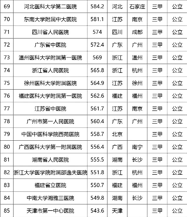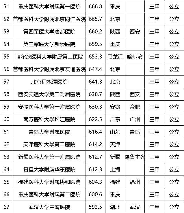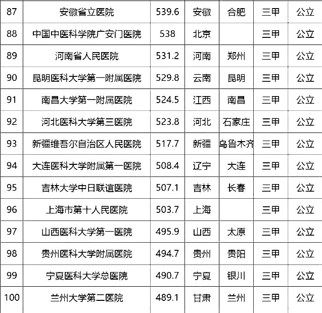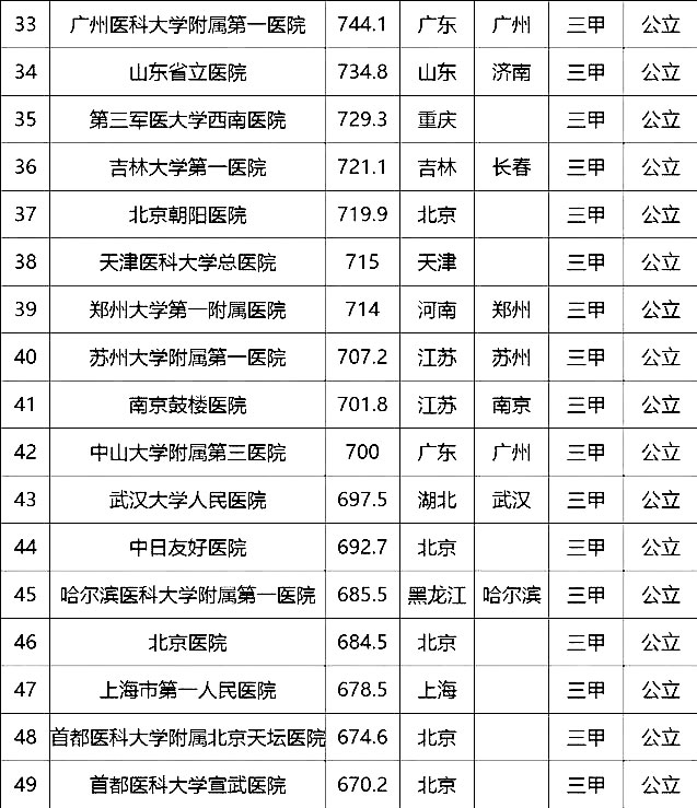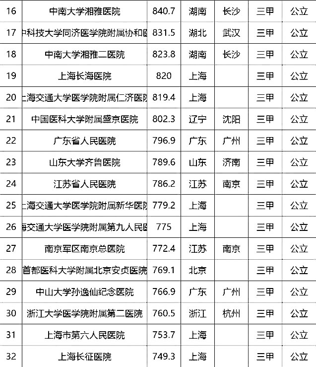 “100強(qiáng)”榜單中,入圍最多的三個省市分別是北京(16家醫(yī)院)、上海(13家醫(yī)院)、廣東(9家)。“100強(qiáng)”共覆蓋32個城市,包括4個直轄市(36家醫(yī)院)、23個省會城市(59家醫(yī)院)、5個地級市(5家醫(yī)院)??傮w看,城市的醫(yī)院平均得分和上榜機(jī)構(gòu)數(shù)有一定的相關(guān)性,上榜機(jī)構(gòu)數(shù)多的城市一般得分均值較高,說明這些城市醫(yī)院整體實(shí)力較高。