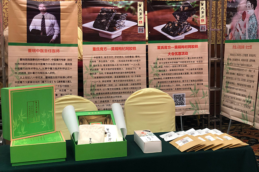膏滋堂作為本次論壇的承辦商對(duì)此次論壇進(jìn)行了全方面的跟蹤和報(bào)導(dǎo)。并攜帶《董氏膏方-黃精枸杞阿膠糕》、《月佳人-女士型阿膠糕》兩款藥食同源的食性價(jià)值很高的阿膠糕參會(huì)。董氏膏方-黃精枸杞阿膠糕是董瑞中醫(yī)主任醫(yī)師臨床三十年得方,從上世紀(jì)80年代末,其潛心研究中醫(yī)膏方大家秦伯未的《膏方大全》與《謙齋膏方案》??偨Y(jié)出了膏方防治疾病與保健的“十個(gè)指導(dǎo)思想”和 “十五個(gè)結(jié)合”,形成了董氏中醫(yī)膏方思想體系,研發(fā)了“珠芨膏”、“仙芪扶陽膏”、“養(yǎng)顏美容膏、“延年益壽膏”“黃精枸杞阿膠糕”等30個(gè)系列膏方,積累了上萬例中醫(yī)膏方防治慢性疑難病及養(yǎng)生保健經(jīng)驗(yàn),為我國的中醫(yī)膏方慢性病防治及亞健康保健作出了貢獻(xiàn)。董瑞先生是我國著名的中醫(yī)膏方專家,擔(dān)任世中聯(lián)中醫(yī)膏方分會(huì)首任會(huì)長,是我國中醫(yī)膏方的學(xué)術(shù)帶頭人,積極開展中醫(yī)膏方“一帶一路”世界交流活動(dòng),主持了首屆APEC雁棲湖國際中醫(yī)膏方高峰論壇及“一帶一路”中匈雁棲湖國際中醫(yī)膏方高峰論壇,讓世界了解了中醫(yī)膏方。