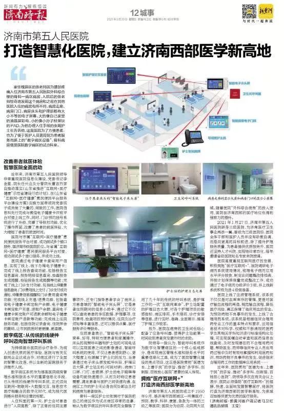 為持續(xù)提升醫(yī)院的治療條件、為病人創(chuàng)造優(yōu)質(zhì)的醫(yī)療體驗,醫(yī)院與有關(guān)互聯(lián)網(wǎng)企業(yè)達成合作,對病區(qū)進行了全面的智慧化改造,并以全新的面貌服務(wù)于濟南市人民。