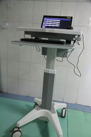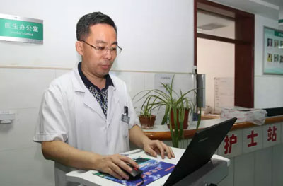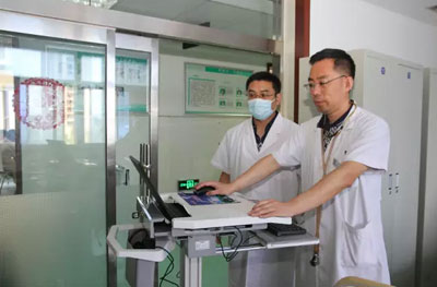 在呼吸內(nèi)二科,科主任韓先章已經(jīng)查完房在寫病歷。說起移動查房,韓先章說:用移動查房車,各種檢查一目了然,比翻病歷方便多了;看完病人立即下醫(yī)囑,又快又不會遺漏,我每次查房至少可以節(jié)約一個小時。而且無紙化辦公,節(jié)約了大量紙張,真是一舉多得。