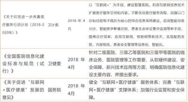 事實上,自2015年4月,國務(wù)院發(fā)布《全國醫(yī)療衛(wèi)生服務(wù)體系規(guī)劃綱要(2015-2020)》,提出加強(qiáng)人口健康信息化建設(shè),到2020年,實現(xiàn)全員人口信息、電子健康檔案和電子病歷三大數(shù)據(jù)基本覆蓋全國人口并信息動態(tài)更新,我國陸續(xù)出臺了一系列加速醫(yī)療信息化產(chǎn)業(yè)發(fā)展的政策。